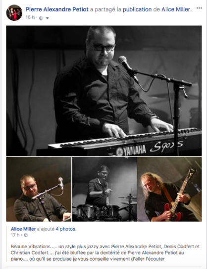 Participation depuis 10 ans au Beaune Blues Boogie Festival de décembre avec Jean-Pierre Bertrand, Lluis Coloma, Stefan Ulbritcht, Christian Dozzler,Martijn Schock, Chris Conz, Nicolas Duportal, Fabrice Eulry, Richie Loidl, Claude Salmiéri,Yvon Guillard and more ..., Organisation de concerts et Masterclasses avec Patrick Rondat, Claude Salmiéri, Antoine Hervé...